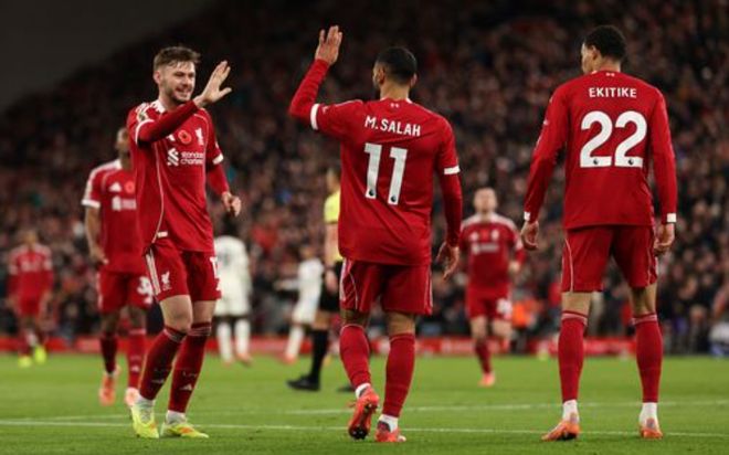 利物浦首发:25-马马尔达什维利、4-范戴克、5-科纳特、12-布拉德利、26-罗伯逊、8-索博斯洛伊、10-麦卡利斯特、38-赫拉芬贝赫、11-萨拉赫、18-加克波、22-埃基蒂克